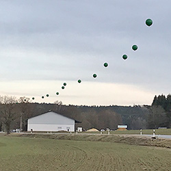 Highlights des Festes waren 13 heliumgefüllte Ballons, die das frühere Landschaftsbild an der Straße von Dengkofen nach Tunzenberg noch einmal sichtbar machten – wenn auch nur symbolisch und für kurze Zeit. Gleichzeitig hatte der Kettensägenkünstler, Franz Rossmeisl, aus einem Pappelstamm eine Fledermaus gesägt - vielleicht sogar die vom Aussterben bedrohte Mopsfledermaus.